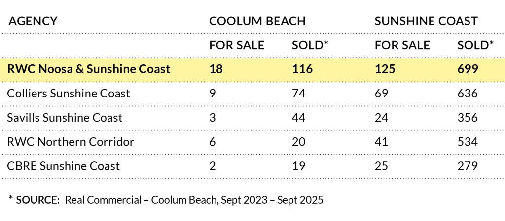 At RWC Noosa & Sunshine Coast, we consistently deliver more sales, leases and management deals than any other commercial real estate agency in the region. Our results are backed by independent data and trusted by hundreds of owners and investors.