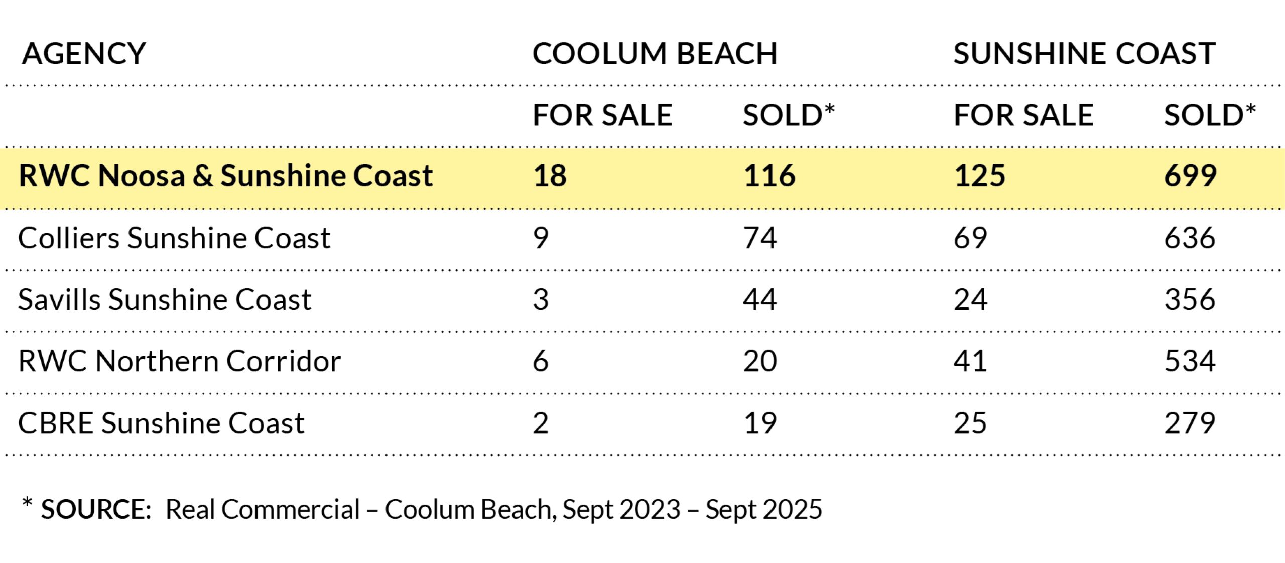 Owner-led & trusted for over 20 years – RWC Noosa & Sunshine Coast has been the market leader in commercial real estate transactions across Noosa and the Sunshine Coast for more than two decades.